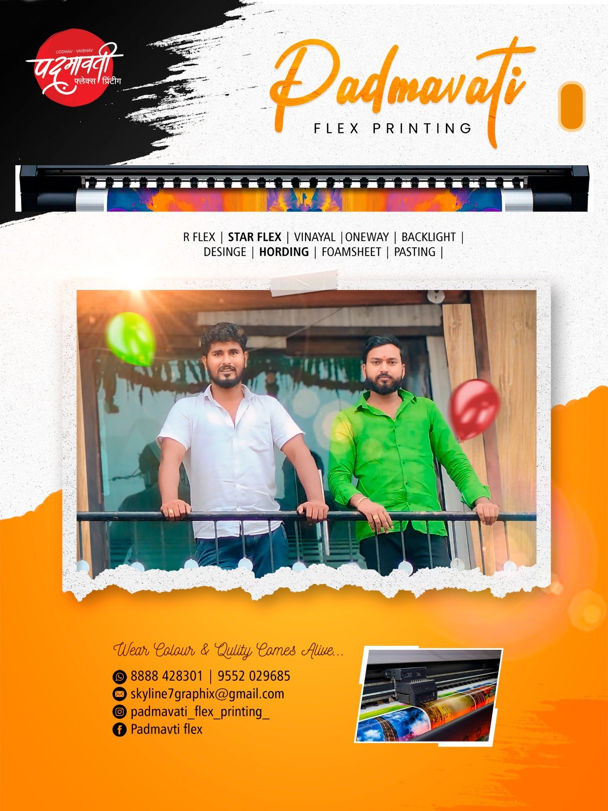 At Padmavati Flex Printing, owned by Mr. Uddhav B. Kate and Mr. Vaibhav S. Kale, we provide a wide range of high-quality printing solutions to meet your advertising and display needs. From flex printing, star printing, and vinyl printing to eco-solvent prints, we ensure vibrant, durable results for both indoor and outdoor use. Our advanced technology guarantees precision and clarity for all your projects.